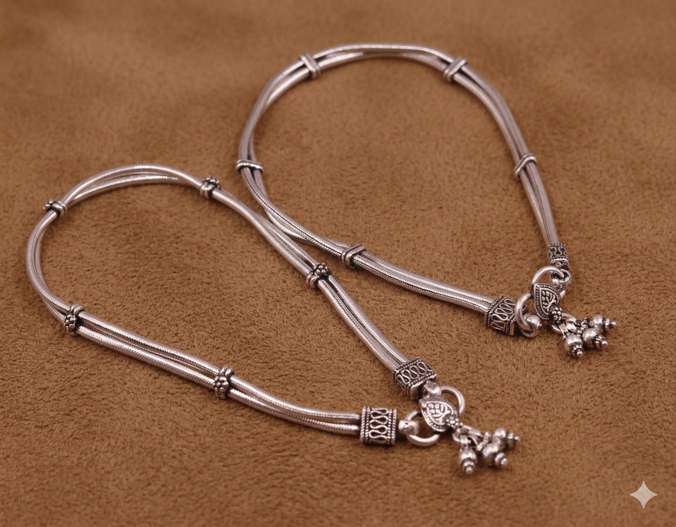 Perfect for weddings, festivals, pooja occasions, or everyday ethnic wear, this payal brings a regal charm to every step. The oxidised silver finish adds depth and antique elegance, making it a standout accessory for the modern Indian woman who appreciates traditional craftsmanship.