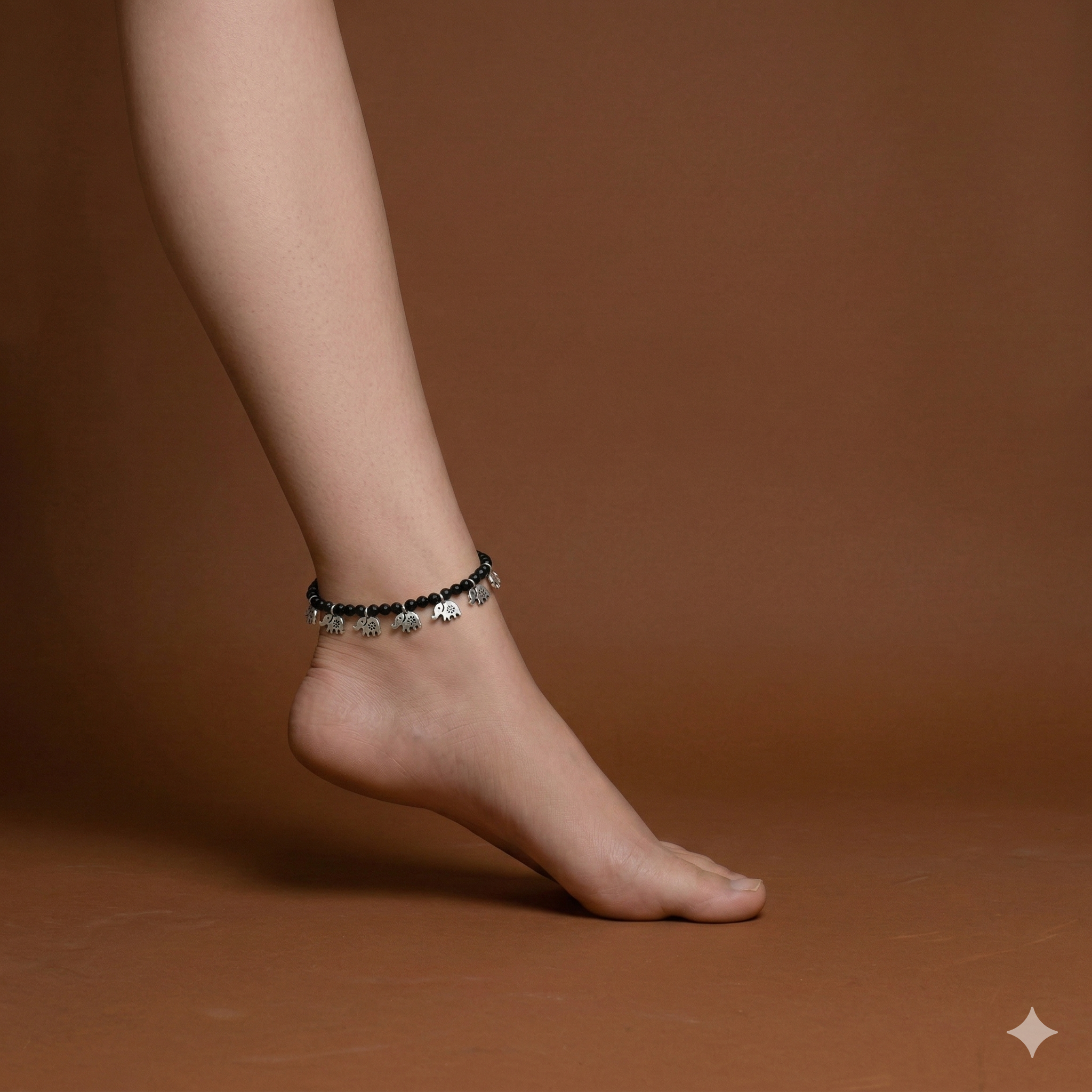 Elevate your everyday look with this stunning Silver Elephant Charm Anklet — a perfect blend of boho charm and traditional Indian craftsmanship. Handcrafted with love, this oxidised silver payal features delicate elephant charms paired with glossy black beads, making it a unique and eye-catching accessory for every occasion.